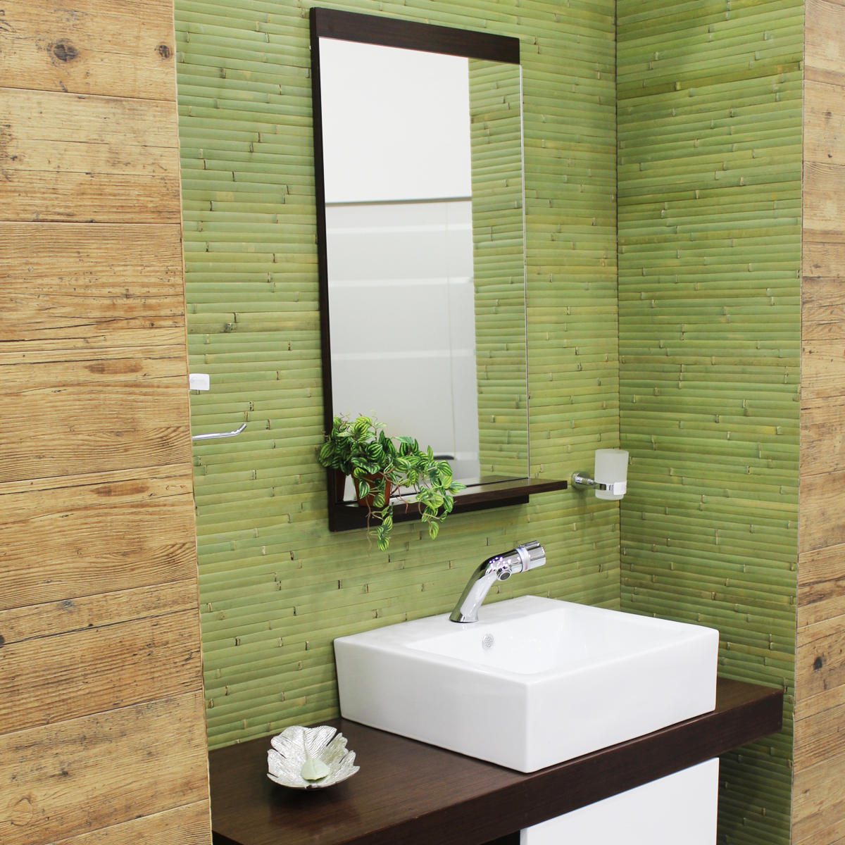 Estos revestimientos de paredes de bambú son una excelente alternativa a la pared de papel o pintar si desea actualizar el aspecto de una habitación. se instala rápidamente temporal o permanentemente sobre cualquier pared o en el techo existente, simplemente se desenrolla y el clavo o pegamento a la pared. Para aplicaciones de techo o pared de una instalación más permanente, adhesivo de construcción. Debido a su construcción flexible, es fácil de instalar de forma continua alrededor de las esquinas. Recorte a la longitud adecuada que se necesita es un broche de presión, acaba de cortar a través del soporte de tela entre las tablillas.